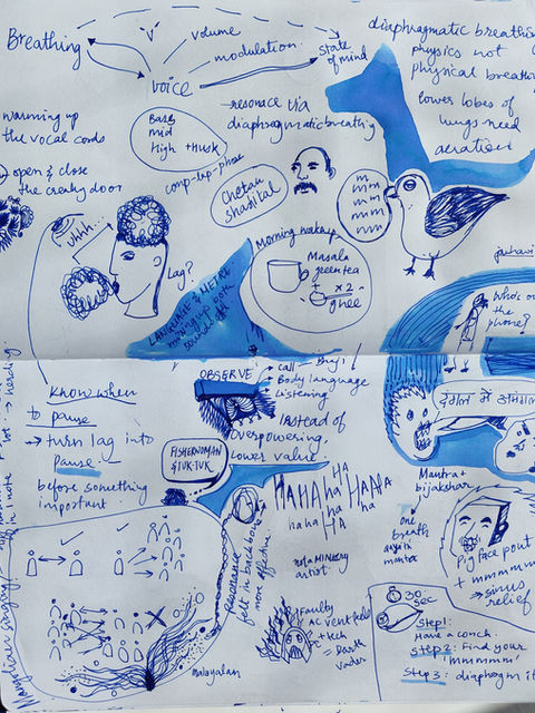 We breathe to live and express ourselves by speech (able-bodied). Just like we exercise to tone and strengthen our muscles, our voice needs some care and attention too. The practice is not exclusive only to voice artists. The diaphragm is a critical organ of respiration. We use it involuntarily and unaware when we laugh, and Chetan enabled us to be mindful of that as he made the entire team laugh instantaneously.